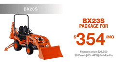$0 Down, 0% A.P.R. financing for up to 84 months on purchases of select new Kubota BX23SLSB-R-1 equipment from